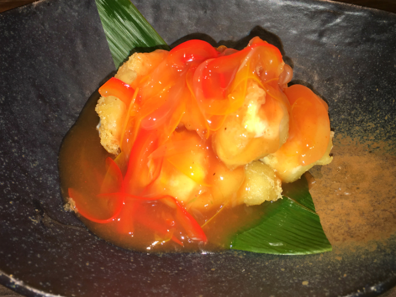 「ジーマーミ豆腐天ぷら あまずあんかけ」