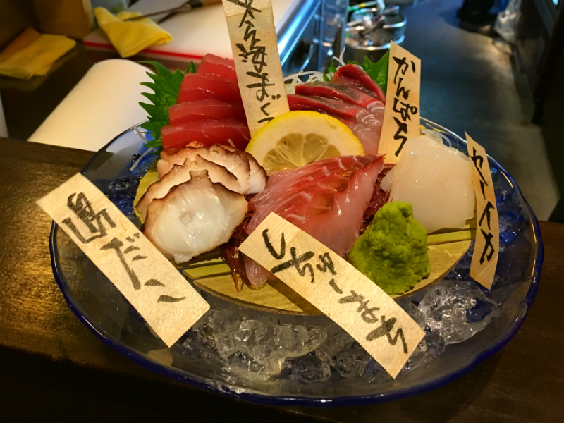「19時まで入店で刺身7種・5種・3種すべて半額」です。